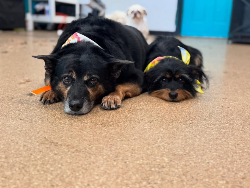 Our doggie daycare is built for open play, positive socialization, and attentive supervision—so pups can move, mingle, and make a few new friends. If someone gets overstimulated, we offer “quiet crates” for a quick reset before jumping back into the fun. Dogs who come regularly often head home calmer, happier, and just tired enough to skip the evening zoomies. No appointment required, but texting ahead helps us balance playgroups for the best possible experience.